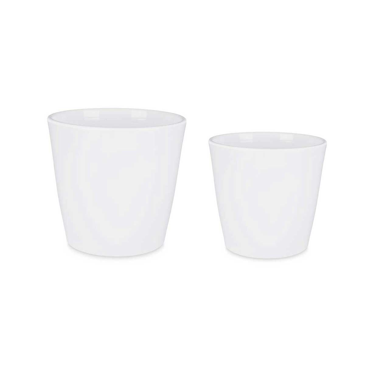 Blumentopfset 2 Stücke Ø 22 cm Ø 28 cm Weiß Lehm