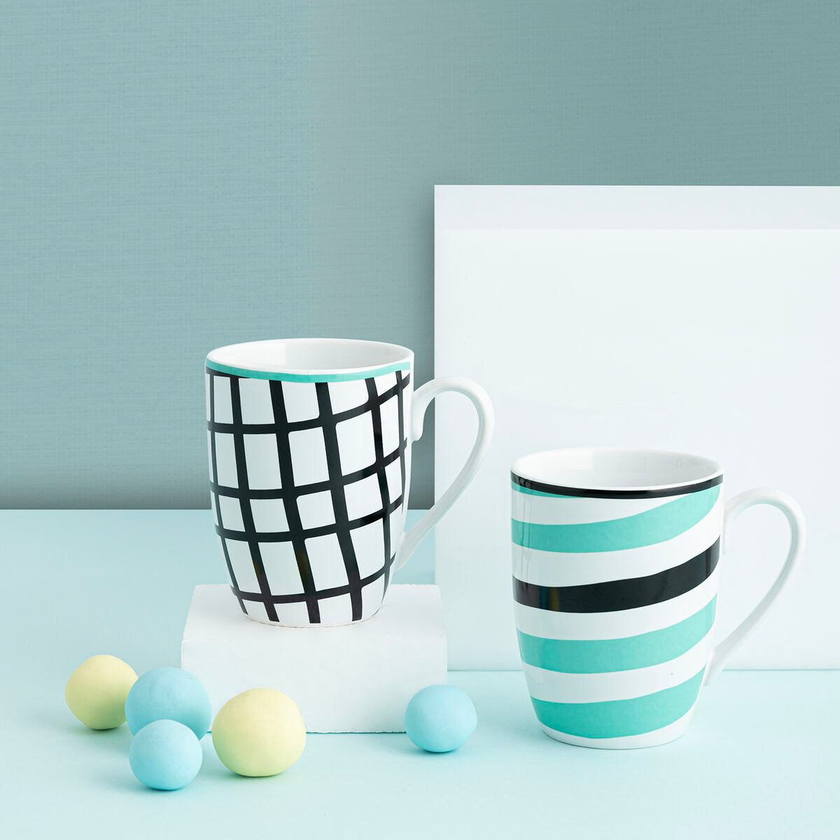 Kop Bidasoa Zigzag Bunt aus Keramik 2 Stücke 330 ml