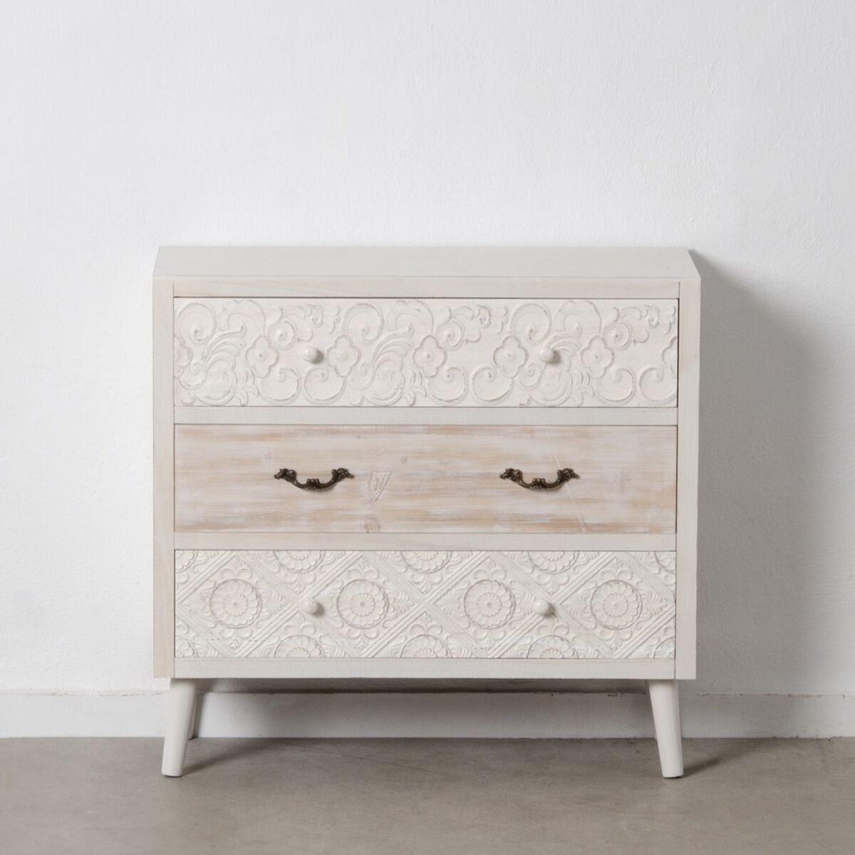 Schubladenschrank DUNE 80 x 33 x 76 cm natürlich Weiß Tannenholz